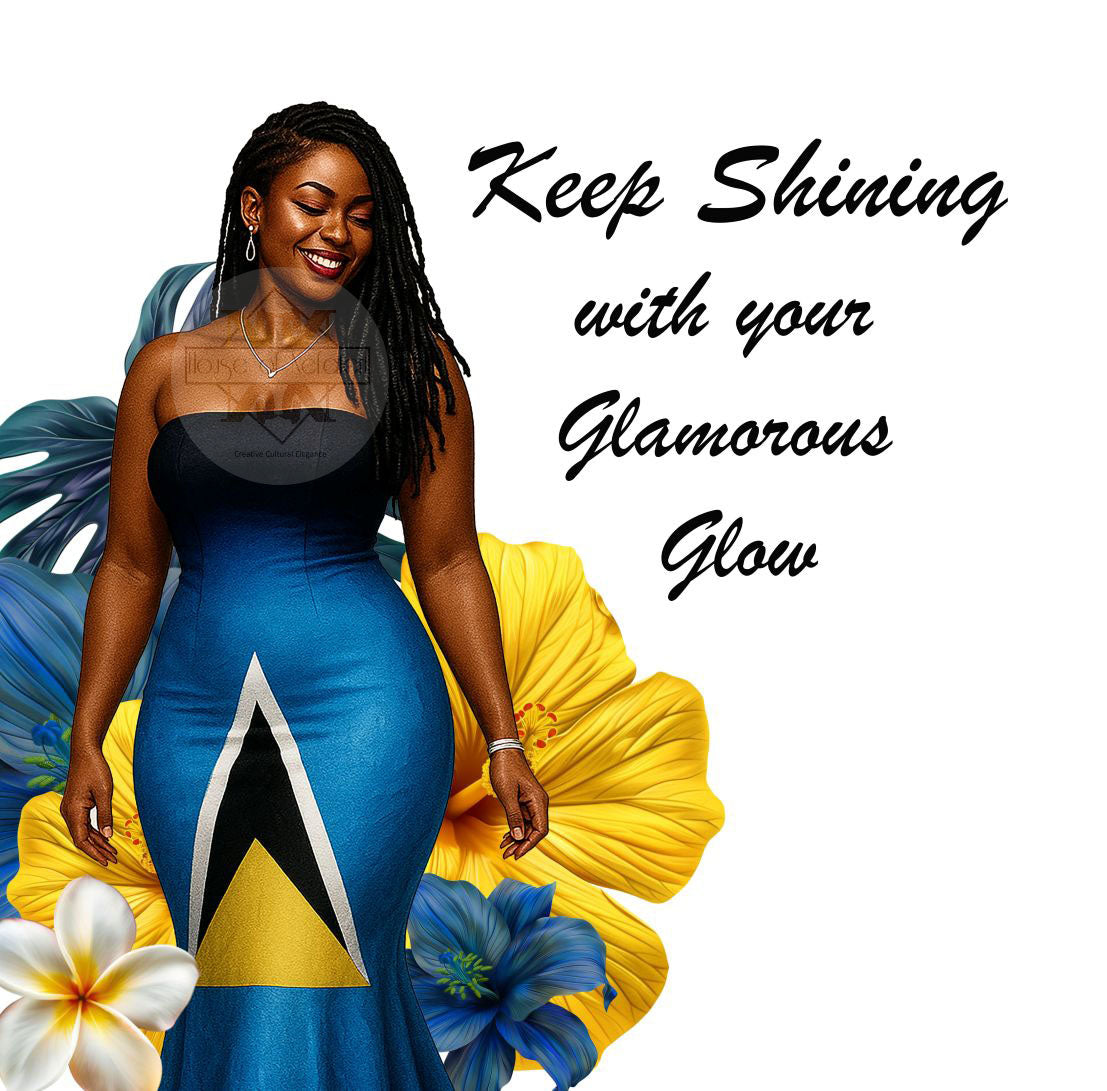 This elegant card belongs to our Caribbean Island collection, highlighting Black women from various Caribbean islands. It features a stunning Black woman with beautiful long black locs, adorned in a figure hugging dress that reflects the spirit of her island.